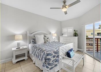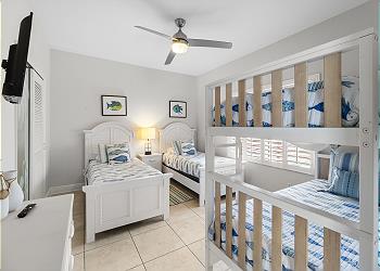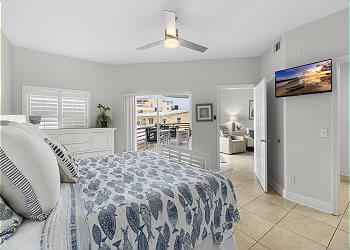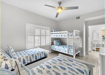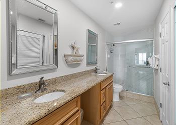 203 Crimson has two master suites. The first has a king canopy bed with walkout balcony. The bath includes double sinks, nickel faucets, double mirrors, frameless shower doors and granite counters. The second master has a king bed and walk out balcony. Two twin beds and one bunk bed furnish the 3rd bedroom. All bedrooms contain new bedding and comfortably sleeps up to six people. As with every SunHost property, linens, extra towels and pillows are all stocked, and ready for you upon arrival. Washer and dryer, are here as well for your convenience.