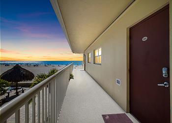 Step outside and down the stairs to the heated pool and picnic tables with umbrellas. The white sand of Madeira Beach is also steps away where you can relax and do all of those things that you think of for a beach vacation. You can also take in some of the most beautiful sunsets over the Gulf of Mexico.