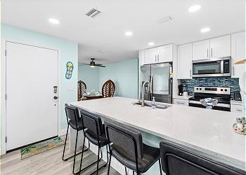 This thoughtfully renovated unit features a bright, open layout with stylish coastal finishes throughout. Designed for both short getaways and extended stays, the condo includes:
